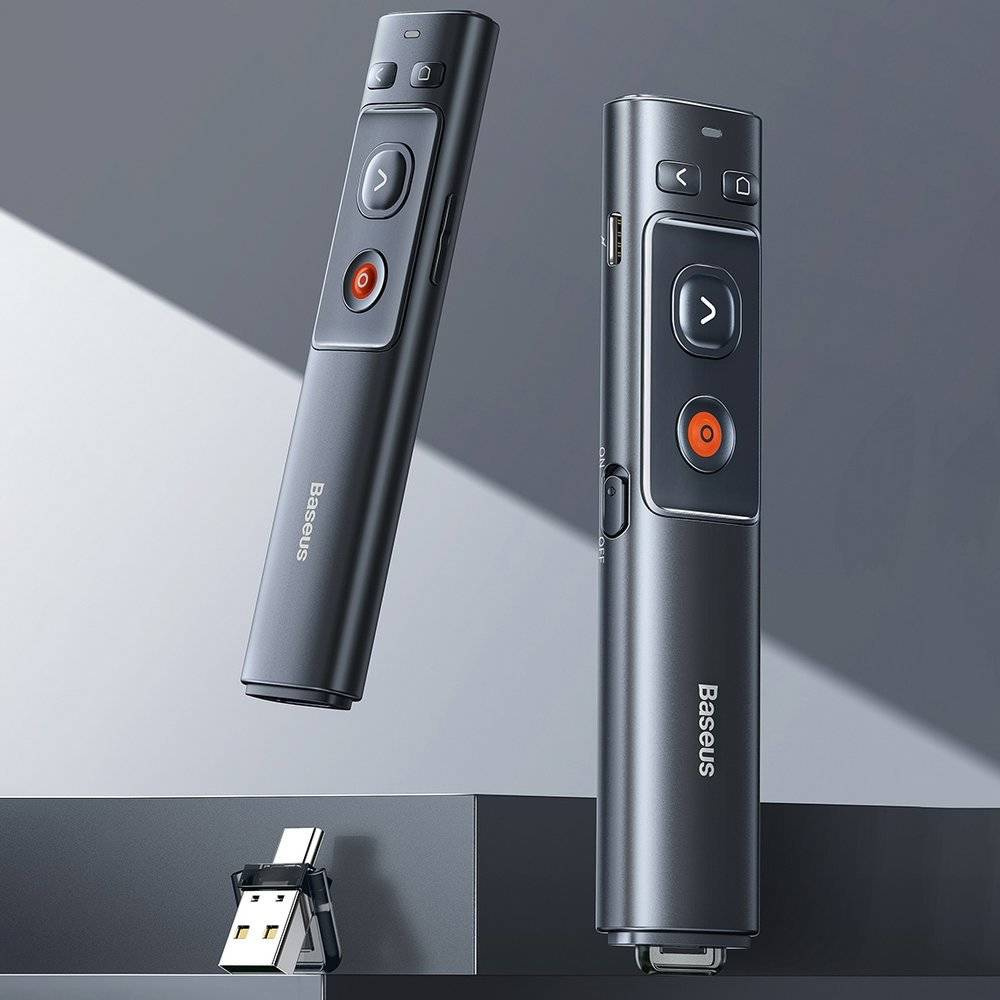 Baseus Orange Dot wskaźnik laserowy pilot do prezentacji PC z wbudowanym akumulatorem szary (WKCD000013)
