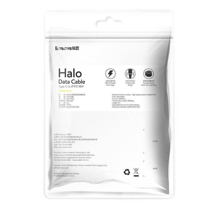 Kabel BASEUS USB-C na Lightning PD Halo, Power Delivery, 18W, 1m czerwony