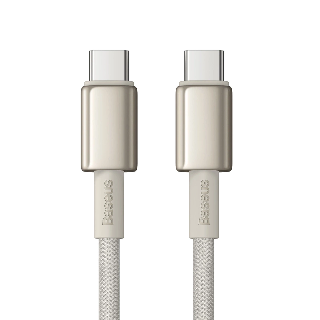 - Kabel Baseus Tungsten Gold USB-C / USB-C 100W. Bezpieczne ładowanie, szybki transfer danych, z trwałych materiałów, o eleganckim designie. Idealny dla nowoczesnych urządzeń. Kolor: złoty. Długość: 2 m.