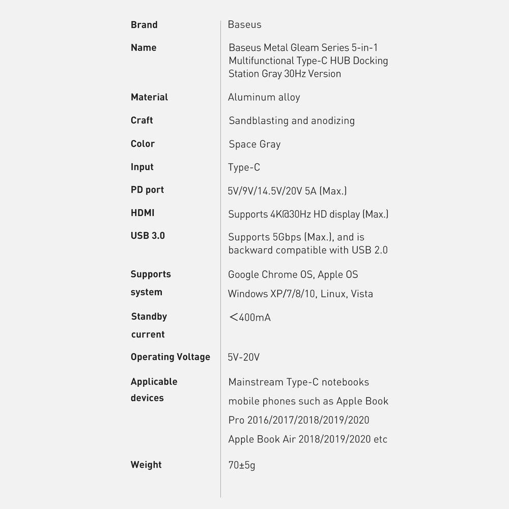 Specyfikacja techniczna Adaptera 5w1 Baseus