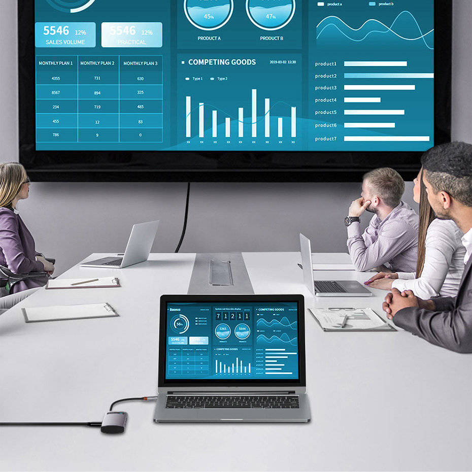 Chcesz podłączyć laptopa do telewizora i cieszyć się wysoką jakością odtwarzanych filmów? Teraz jest to możliwe dzięki adapterowi 5w1 Baseus. Urządzenie jest wyposażone w port HDMI, który pozwala na wyświetlanie obrazu o rozdzielczości do 4K@30Hz. Dzięki temu, możesz cieszyć się wyraźnym i czytelnym obrazem na dużym ekranie, niezależnie od tego, czy oglądasz film, prowadzisz prezentację, czy grasz w gry.