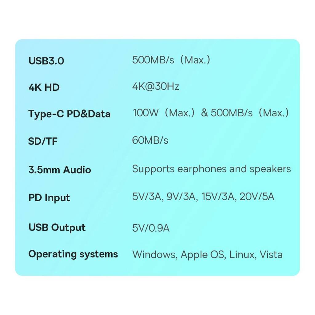 Baseus PadJoy 6w1 posiada aż sześć portów - USB3.0, HDMI 2.0, USB-C (PD + transmisja danych), SD, TF i mini jack 3.5mm. Dzięki temu, możesz podłączyć do swojego urządzenia wiele różnych akcesoriów jednocześnie. Co więcej, hub umożliwia szybkie ładowanie urządzeń (do 100W) oraz przesyłanie danych z prędkością do 500MB/s. To idealne rozwiązanie dla osób, które cenią sobie wydajność i szybkość działania.