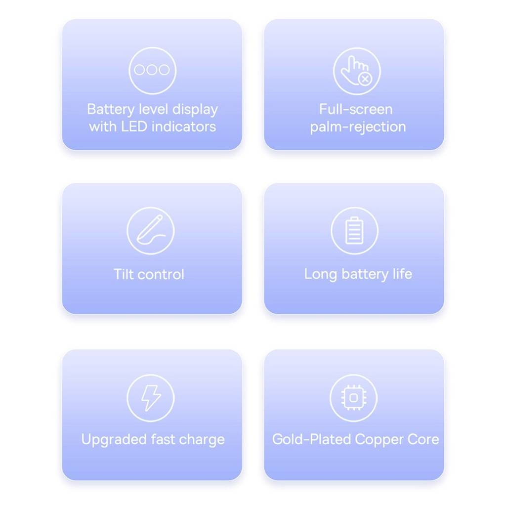 Rysik Baseus Smooth Writing 2 oferuje niezwykłą precyzję, umożliwiając wykonywanie ruchów pod każdym kątem. Wykorzystuje końcówkę pokrytą złotem, co zapewnia mocny sygnał i idealne odwzorowanie ruchów. To doskonałe narzędzie dla artystów, grafików czy entuzjastów notatek ręcznych, umożliwiające płynne i precyzyjne rysowanie. Co więcej, rysik jest w pełni kompatybilny z większością modeli iPadów.