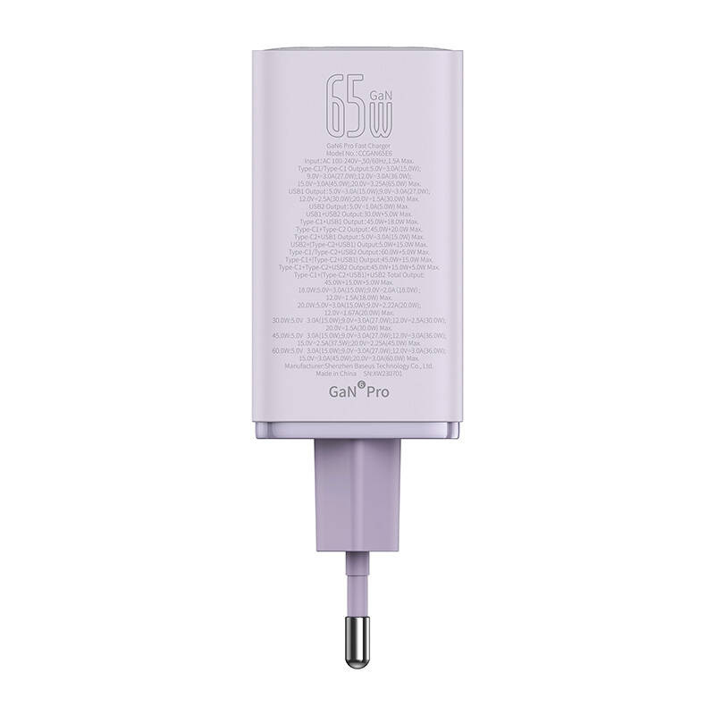 Ładowarka sieciowa Baseus GaN6 Pro, 2xUSB-C + 2xUSB, 65W (fioletowa)