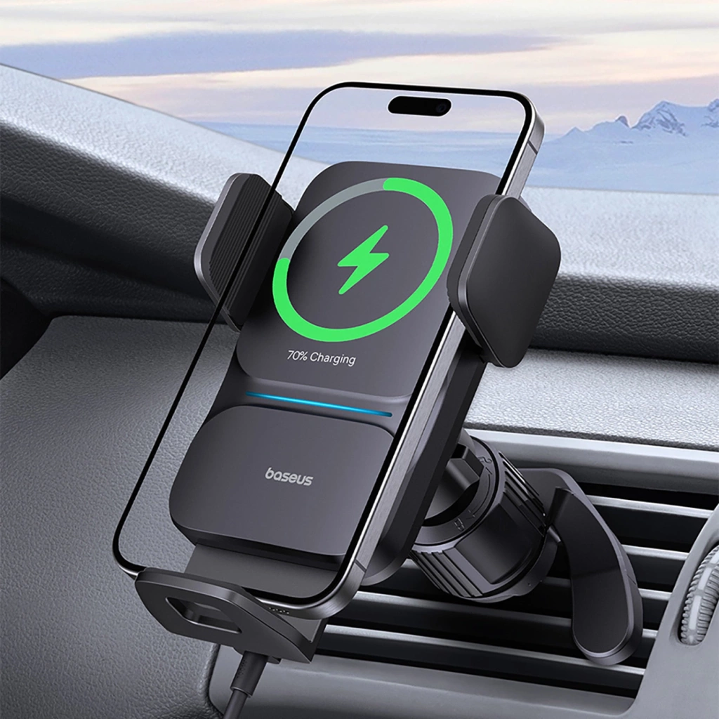 Baseus Wisdom to nie tylko uchwyt do telefonu, ale również ładowarka indukcyjna o mocy 15W. Dzięki temu, podczas korzystania z nawigacji w telefonie, możemy jednocześnie ładować nasze urządzenie. Dodatkowo, uchwyt posiada funkcję rozpoznawania obcych przedmiotów i w przypadku wykrycia takiego, automatycznie wstrzymuje ładowanie, aby uniknąć przegrzania urządzenia.