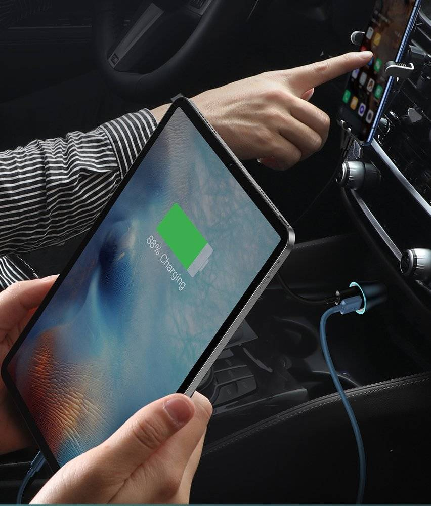 Ładowarka samochodowa Baseus Golden Contactor Pro PD 40W zapewnia wygodę użytkowania. Dzięki dwóm portom USB - standardowemu i typu C - umożliwia jednoczesne ładowanie dwóch urządzeń. Niewielkie wymiary ładowarki sprawiają, że nie zajmuje ona wiele miejsca w samochodzie, a jej stabilna konstrukcja zapewnia pewne mocowanie nawet podczas jazdy po nierównej nawierzchni.
