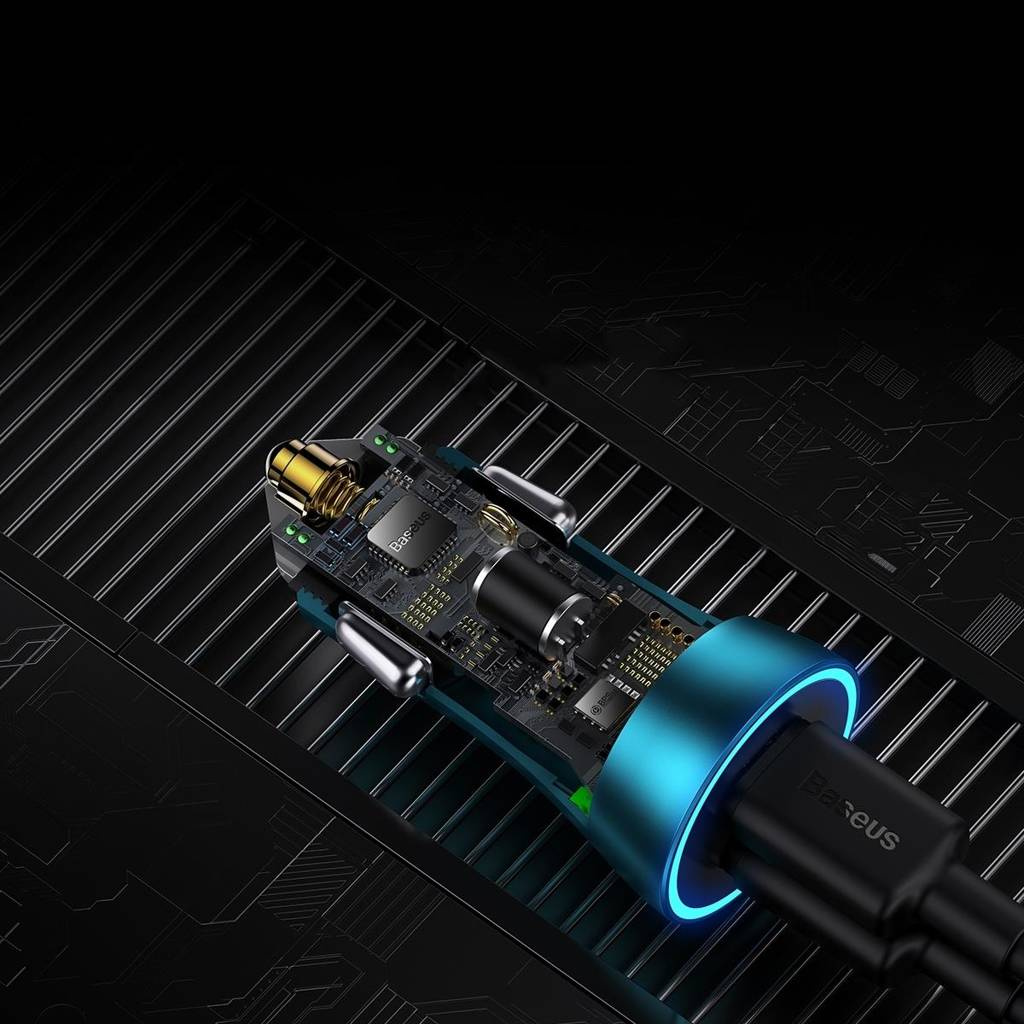 Baseus Golden Contactor Pro nie jest tylko wydajny, ale również estetycznie wykonany. Gustowna, niebieska metalowa obudowa nie tylko prezentuje się elegancko we wnętrzu samochodu, ale również jest odporna na przegrzewanie, co gwarantuje bezpieczne i długotrwałe użytkowanie urządzenia. Dodatkowo, dzięki perfekcyjnemu kształtowi, ładowarka pozostaje stabilna nawet podczas jazdy po wyboistej drodze.