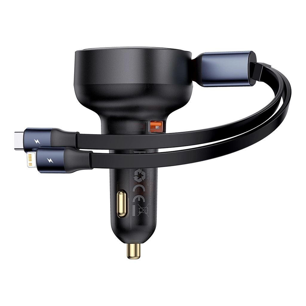 Ładowarka samochodowa Baseus Enjoyment wyróżnia się nie tylko swoją funkcjonalnością, ale także designem. Wykonana z wysokiej jakości materiałów, jest odporna na uszkodzenia zewnętrzne i wysokie temperatury. Dzięki kompaktowym rozmiarom, łatwo umieścić ją w gnieździe zapalniczki samochodowej, a jej elegancki, czarny kolor pasuje do każdego wnętrza samochodu. Wbudowane, zwijane kable ze złączami USB-C i Lightning ułatwiają przechowywanie i zwiększają wygodę użytkowania.