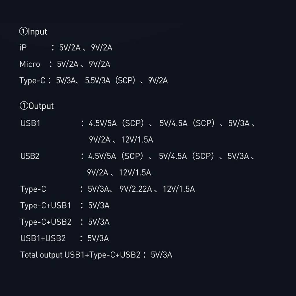 Wyjście USB1: 4,5 V / 5 A (SCP), 5 V / 4,5 A (SCP), 5 V / 3 A, 9 V / 2 A, 12 V / 1,5 A