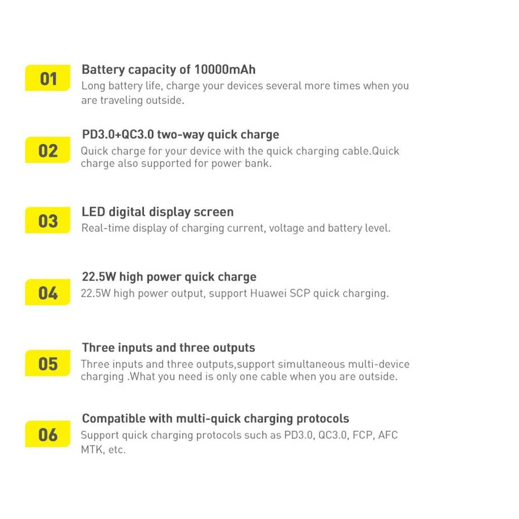 Zapomnij o problemach z niskim poziomem baterii w Twoim urządzeniu mobilnym. Powerbank Baseus Adaman Metal o pojemności 10 000 mAh obsługuje różne protokoły szybkiego ładowania i pracuje z mocą do 22,5 W. Dzięki temu, w około 30 minut może naładować Huawei P30 do 60%, a iPhone’a 13 do 50%. Pojemność urządzenia pozwala naładować iPhone’a 13 około 2 razy, iPhone’a 12 około 2,1 raza, a Huawei Mate 40 około 1,5 raza. To sprawia, że powerbank jest niezastąpiony podczas długich podróży, gdy nie masz dostępu do gniazdka.