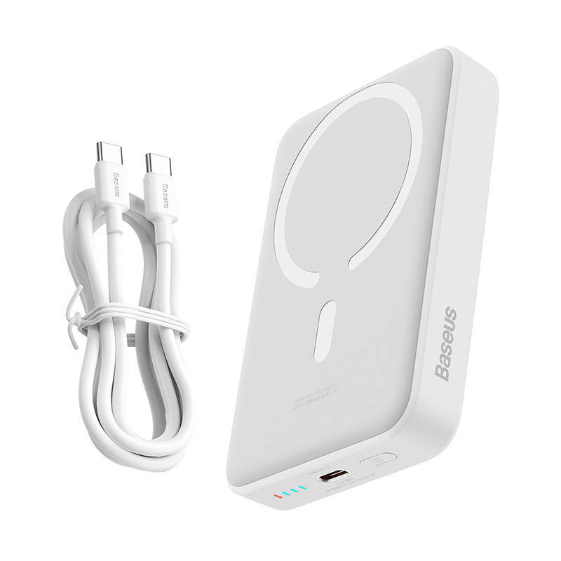Mini powerbank Baseus 10000mAh 30W to wyjątkowy produkt, który łączy w sobie funkcjonalność i styl. Wykonany w białym kolorze, z eleganckim, minimalistycznym designem, ten powerbank jest nie tylko praktycznym narzędziem, ale także modnym dodatkiem. Jego kompaktowy rozmiar i lekka waga pozwalają na łatwe przenoszenie go w torbie, plecaku czy nawet kieszeni. Wygodne bezprzewodowe ładowanie oraz wbudowane magnesy o dużej sile przyciągania zapewniają stabilność umieszczonego na nim telefonu. Dzięki temu, możesz korzystać z telefonu, nawet podczas ładowania, bez obawy o jego przesunięcie czy upadek.