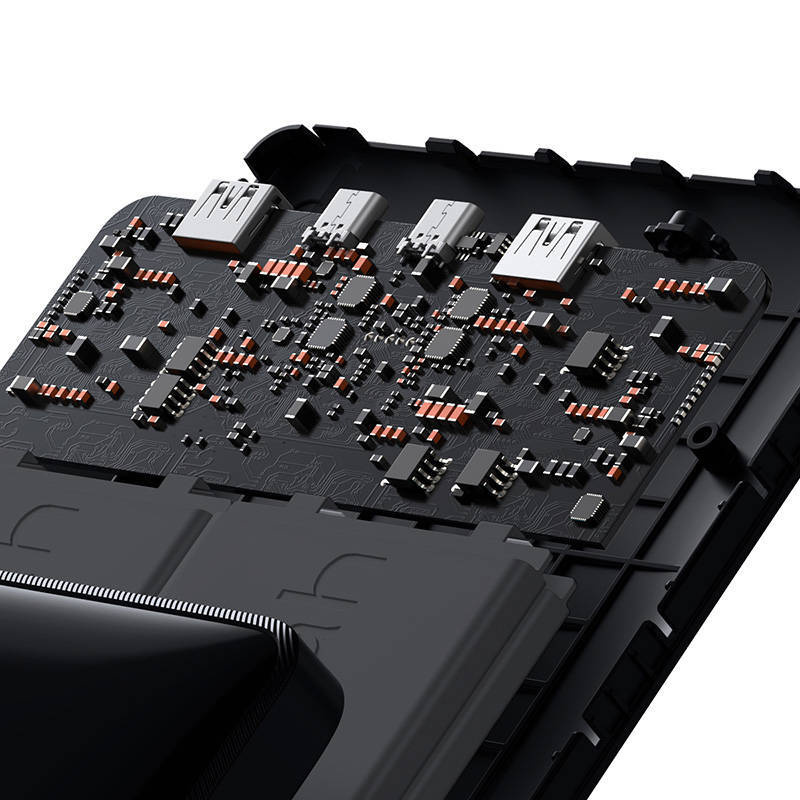 Powerbank Baseus Blade pozwala na ładowanie aż 4 urządzeń jednocześnie, dzięki czemu możesz dzielić się nim z rodziną lub przyjaciółmi. Współpracuje z większością popularnych urządzeń zasilanych przez USB-A/USB-C, a technologia BPSII wspiera szybkie ładowanie. Co więcej, urządzenie posiada wiele zabezpieczeń, które chronią Twoje urządzenia przed uszkodzeniem.