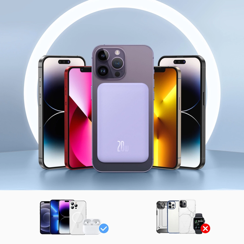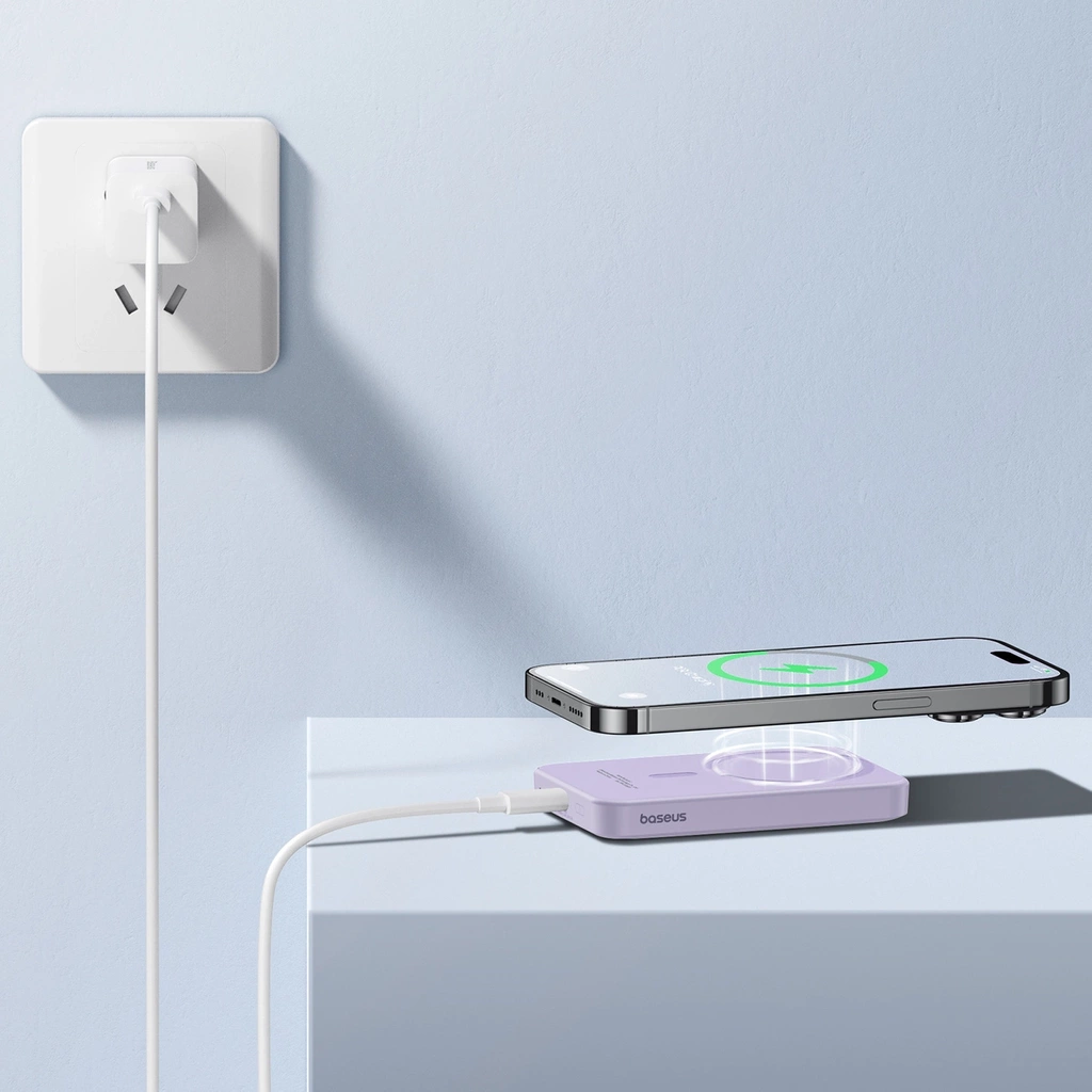 Baseus Magnetic Mini to potężna bateria zamknięta w minimalistycznej obudowie. Jego kompaktowy rozmiar sprawia, że z łatwością zmieścisz go w kieszeni, zawsze gotowy do działania, gdy potrzebujesz dodatkowej energii.