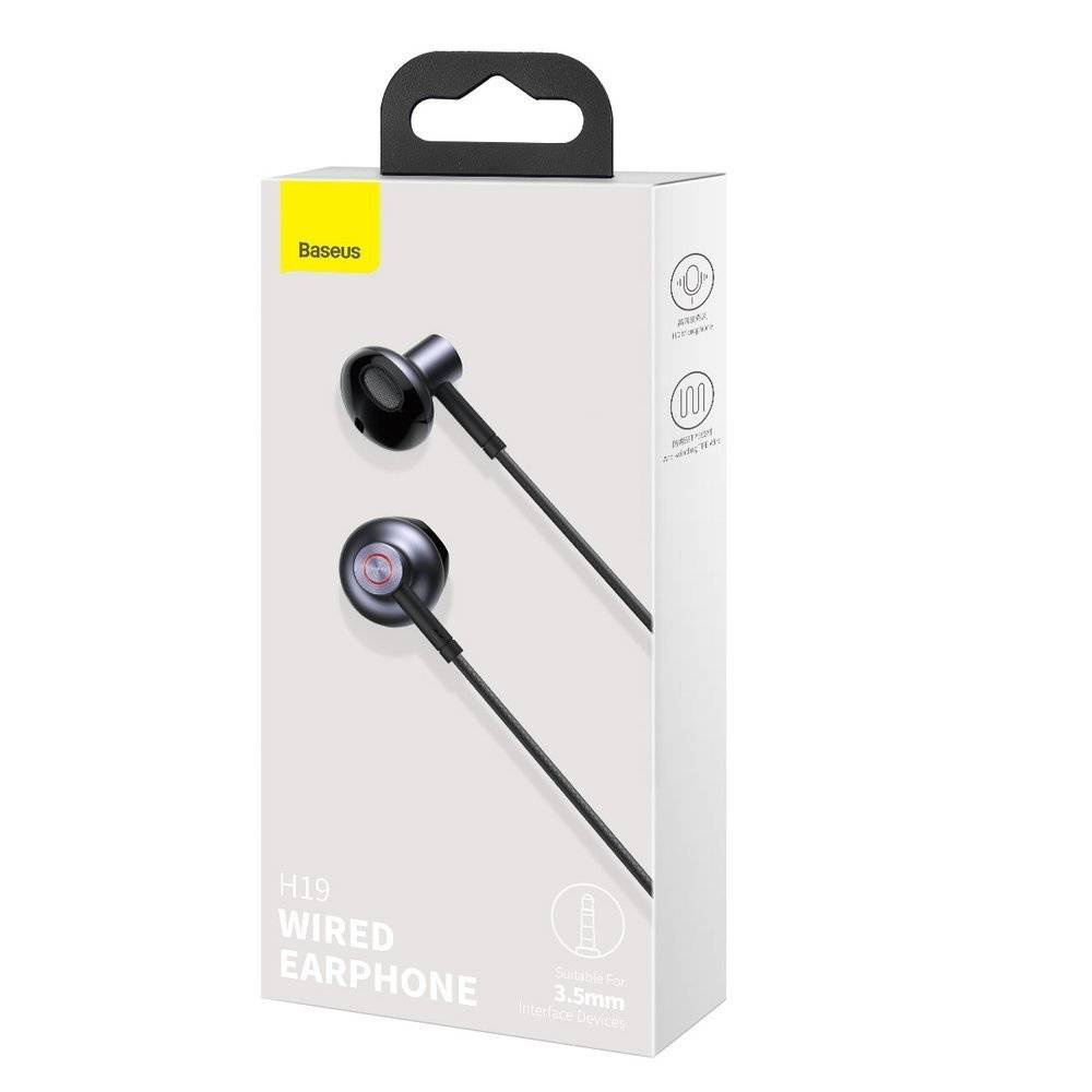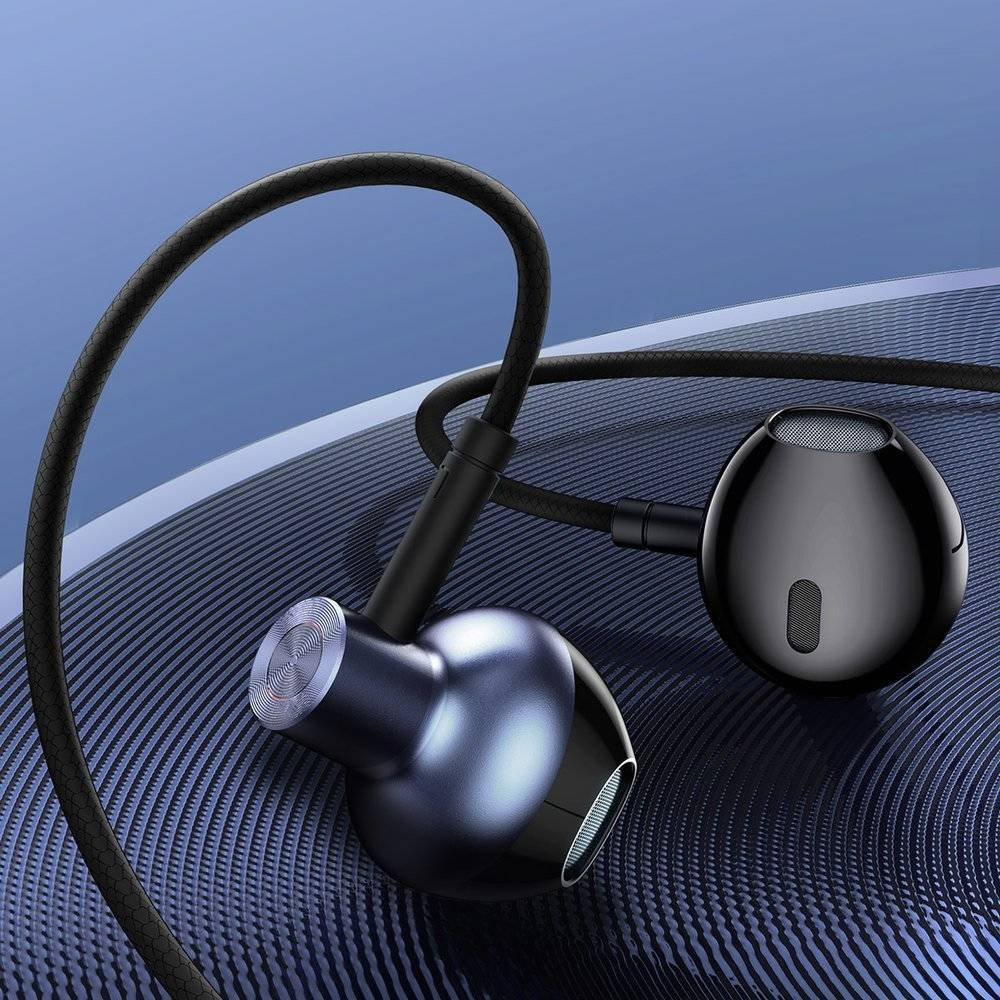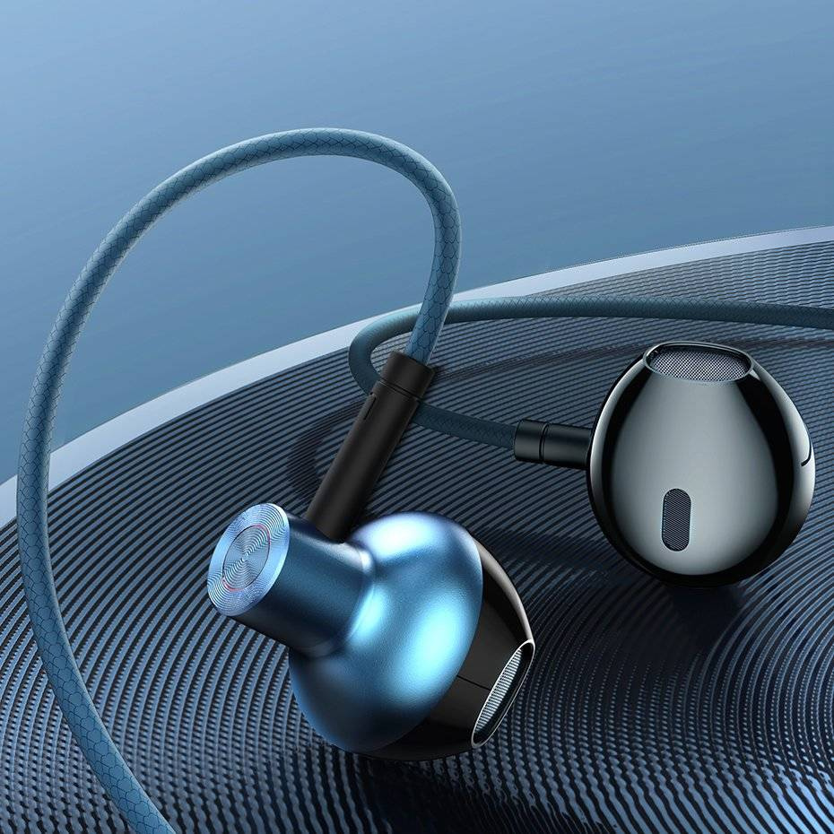Baseus Encok H19 przewodowe douszne słuchawki 3,5 mm mini jack z pilotem i mikrofonem niebieski (NGH19-01)
